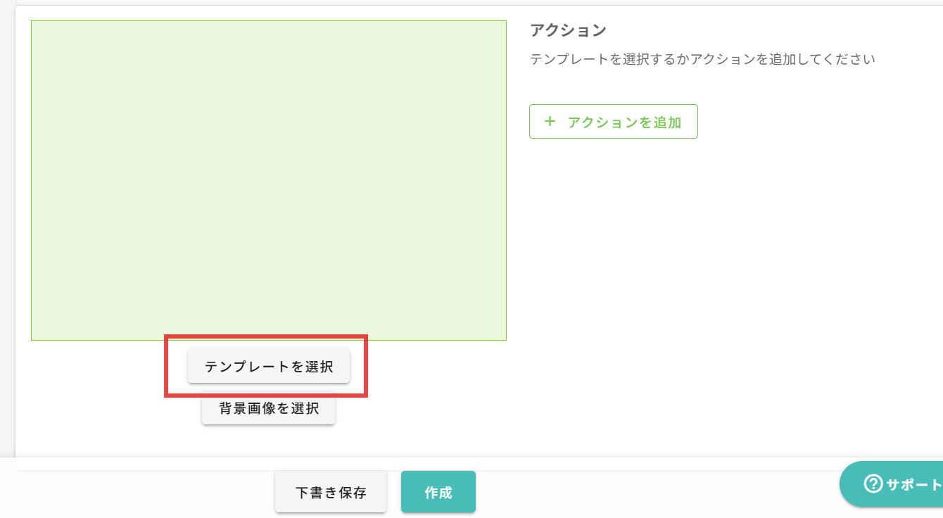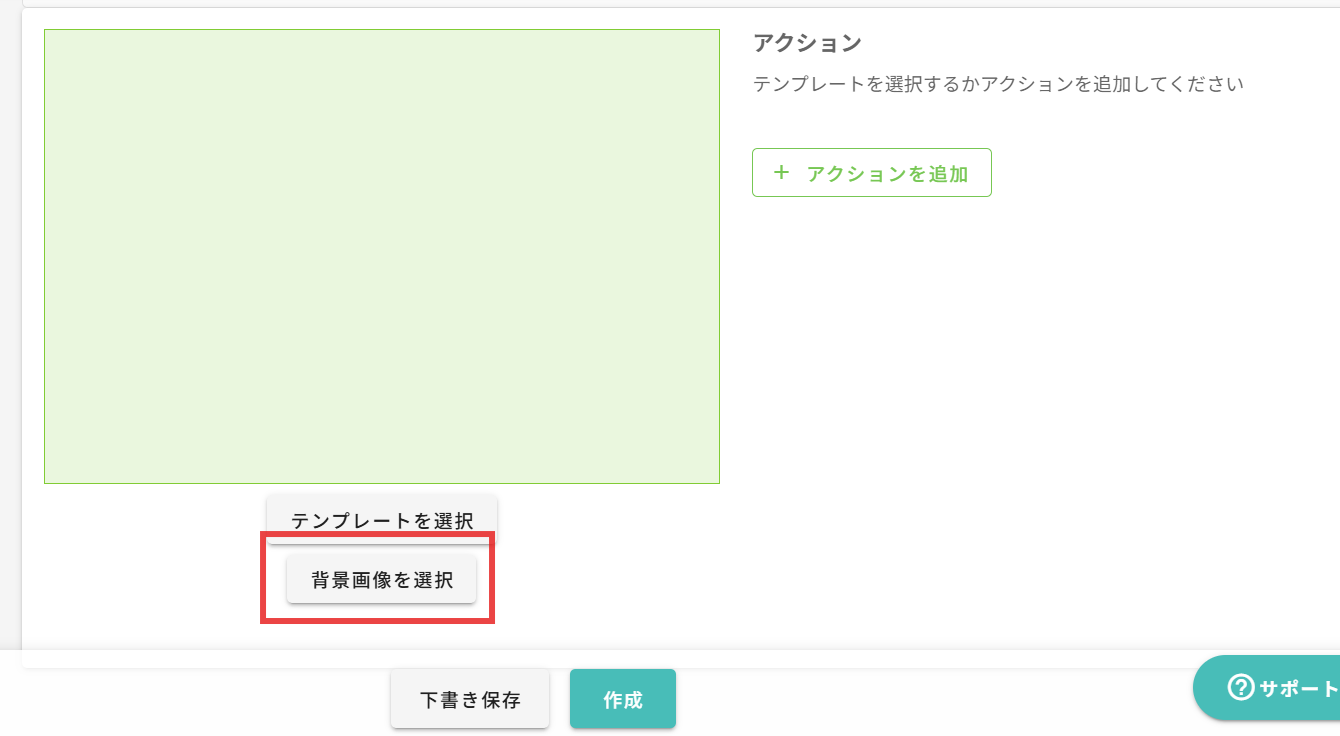 表示設定とコンテンツ設定が完了したら「下書き保存」または「作成」をクリックし、リッチメニューを下書き保存または作成します。なお、「作成」を選択すると再編集ができませんのでご注意ください。