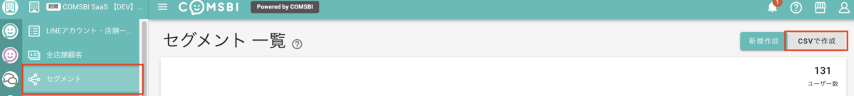② 「セグメント」メニューから「CSVで作成」を選択します。