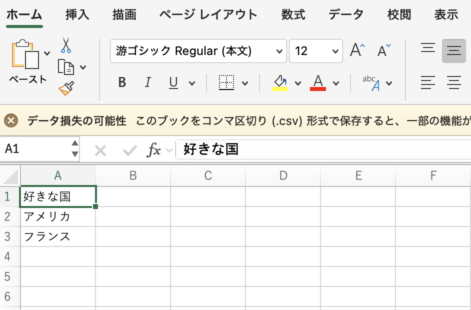 例として「好きな国」を一行記述として作成します。
