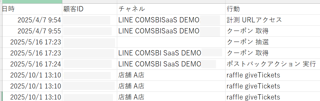COMSBIでの行動履歴をリスト形式で閲覧することができたり、CSV形式で抽出が可能です。