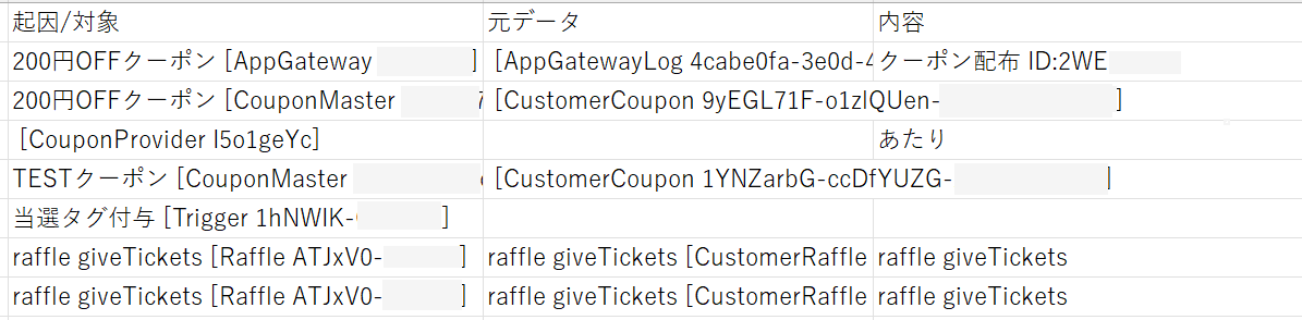 ・起因/対象(クーポン名、ポストバック名等のタイトル、ID)