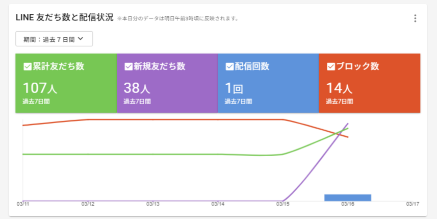 - 指定期間中に LINE アカウントをブロックした顧客数です。期間中に顧客がブロックを解除した場合はここから減少します。