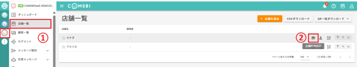 1,LINEアカウントのアイコンをクリックして、「店舗一覧」画面を開きます。