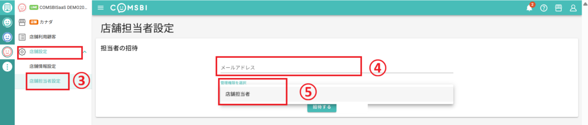 店舗担当者として招待する