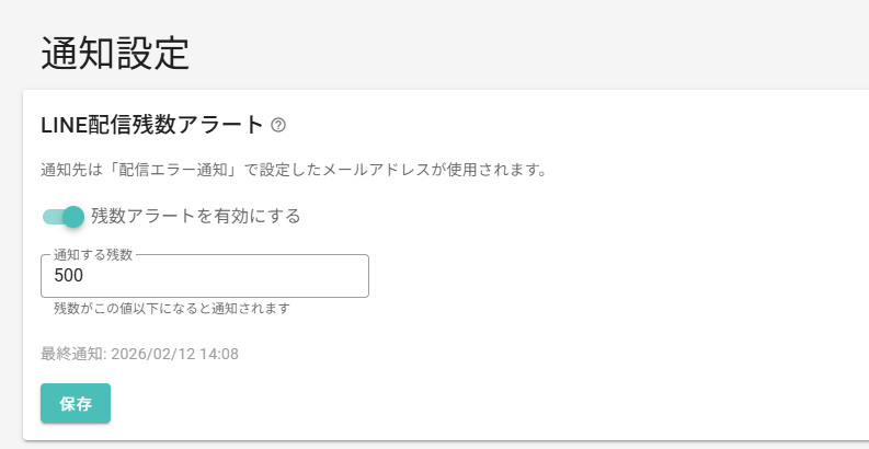 指定した通数の残量を超えた配信を行おうとした際に、指定されたメールアドレスにアラートが送付されるようになりました。ポストバックアクションで送付するメッセージも対象に含まれるため、意図しない通数超過や、送り漏れを防ぐことはできるようになりました。