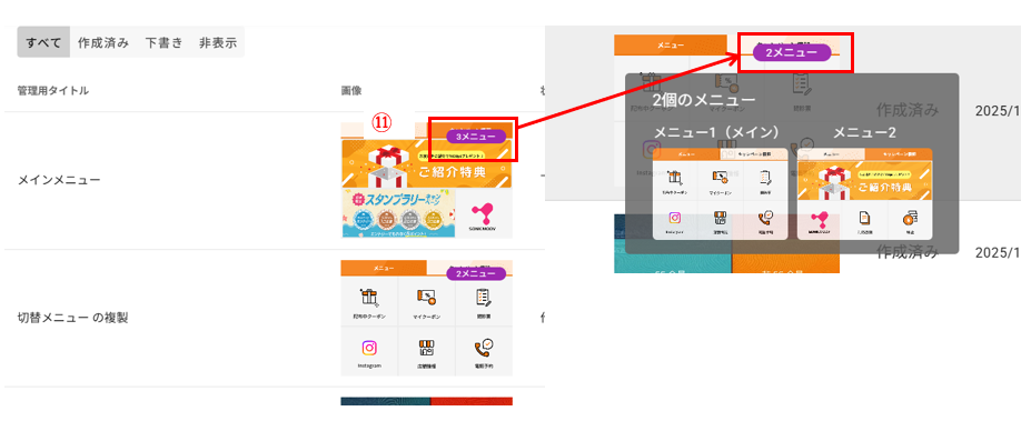 • 状態が「作成済み」のリッチメニューの内容を確認することができます。再編集はできません。