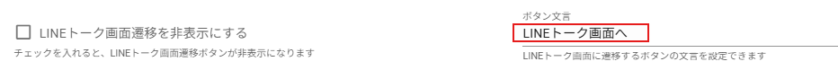 デフォルトは「LINEトーク画面へ」となっておりますので、任意のテキストにご変更ください。