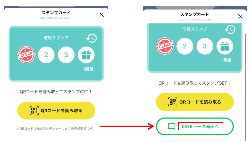 スタンプカードを開いた状態からアカウントのトーク画面に戻るボタンの設置が可能です。